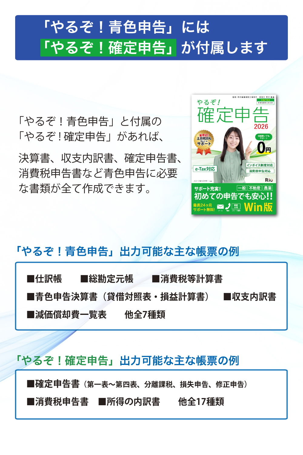 「やるぞ!青色申告」なら入力の手順も必要な書類も不安なく、より簡単に作成できます。