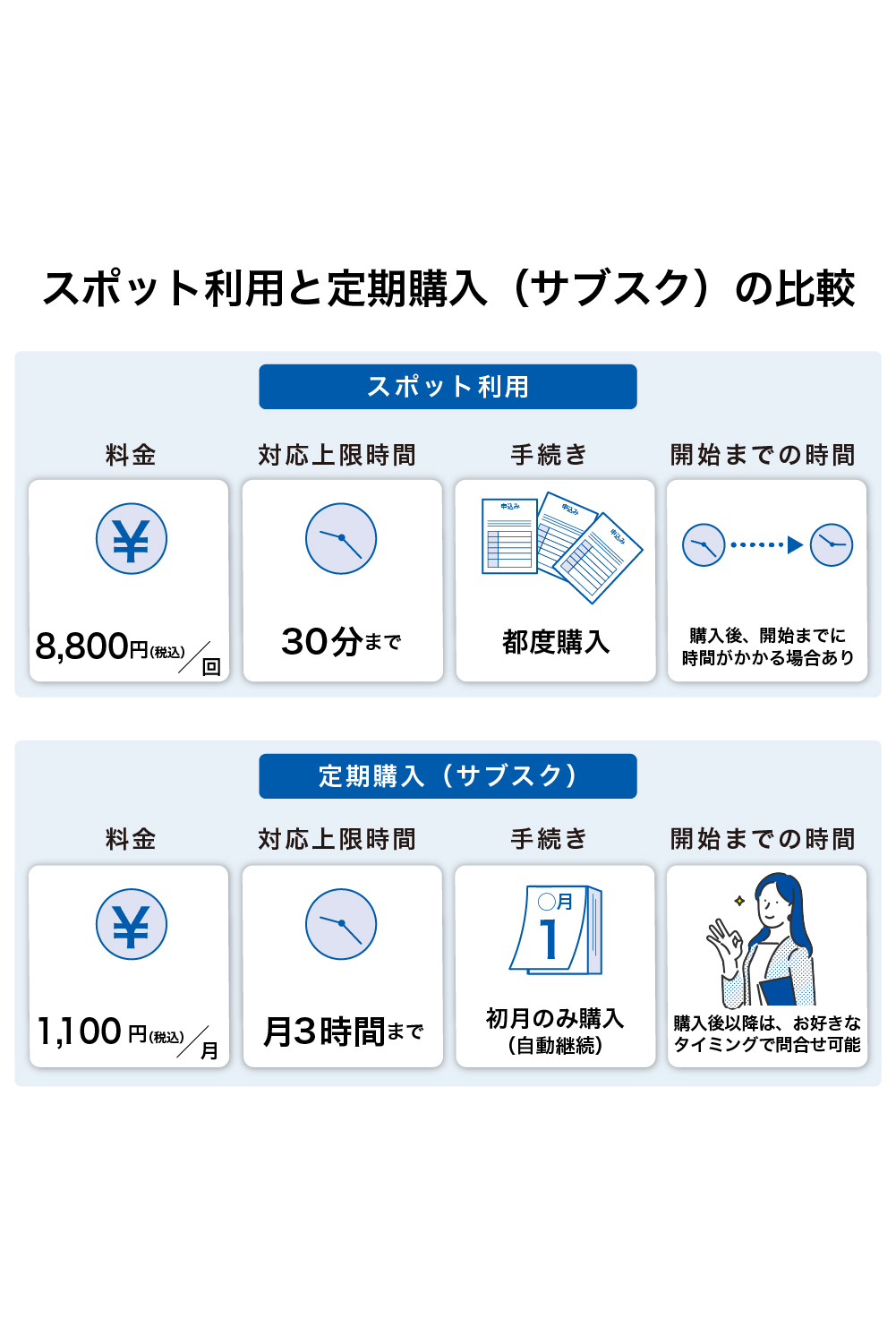スポット利用と定期購入(サブスク)の比較